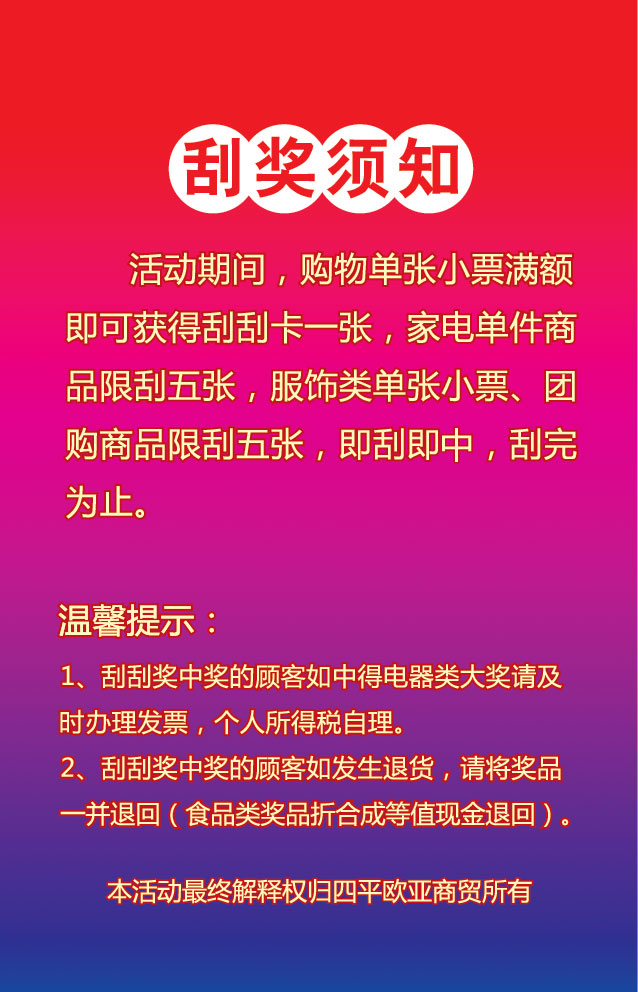 歐亞購物中心刮獎卡